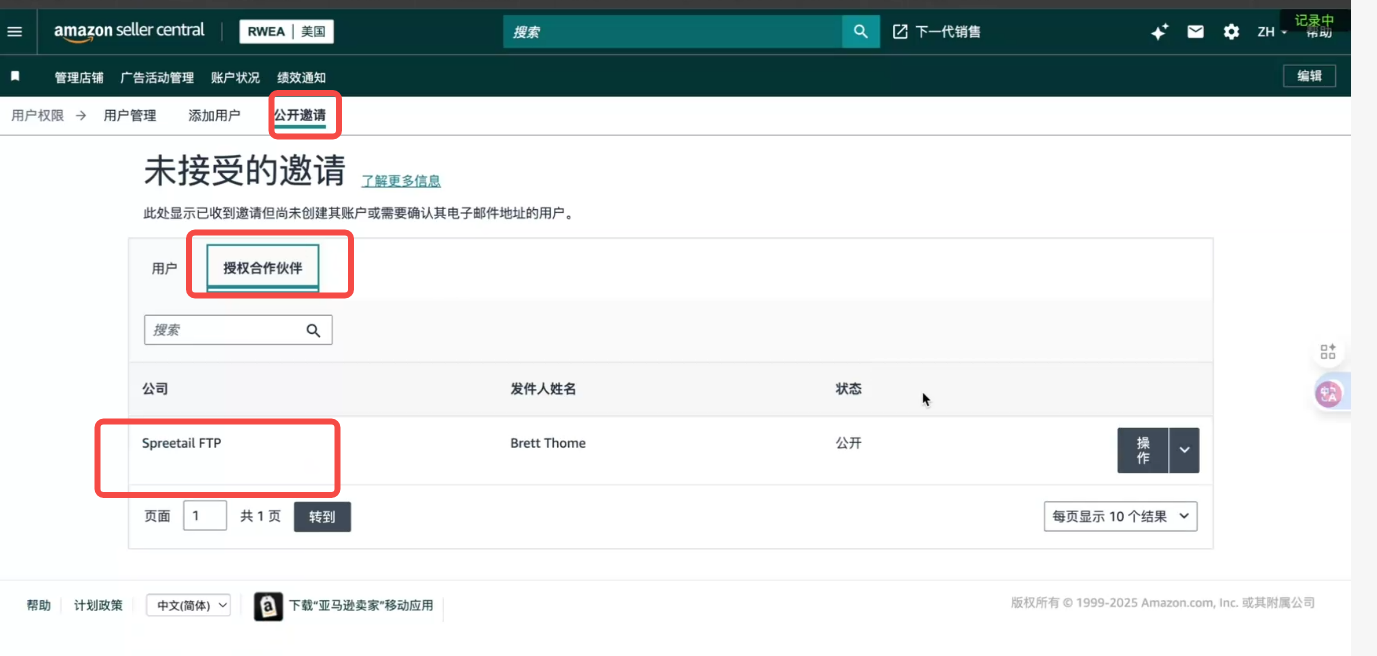 Will bring you back to ‘User Permissions’ > Click on ‘Global User Permissions’>’Authorized Partners’>’Open Invitations’